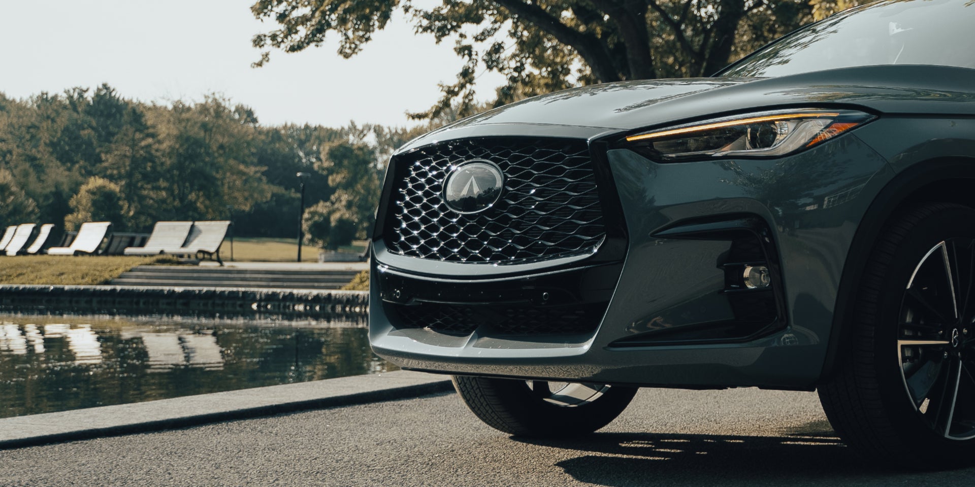 QX50’s headlights are meant to evoke the intelligence of the human eye. Its double-arch grille is a quiet bridge reflecting in peaceful waters below. On an INFINITI, every detail is a considered exercise in art.