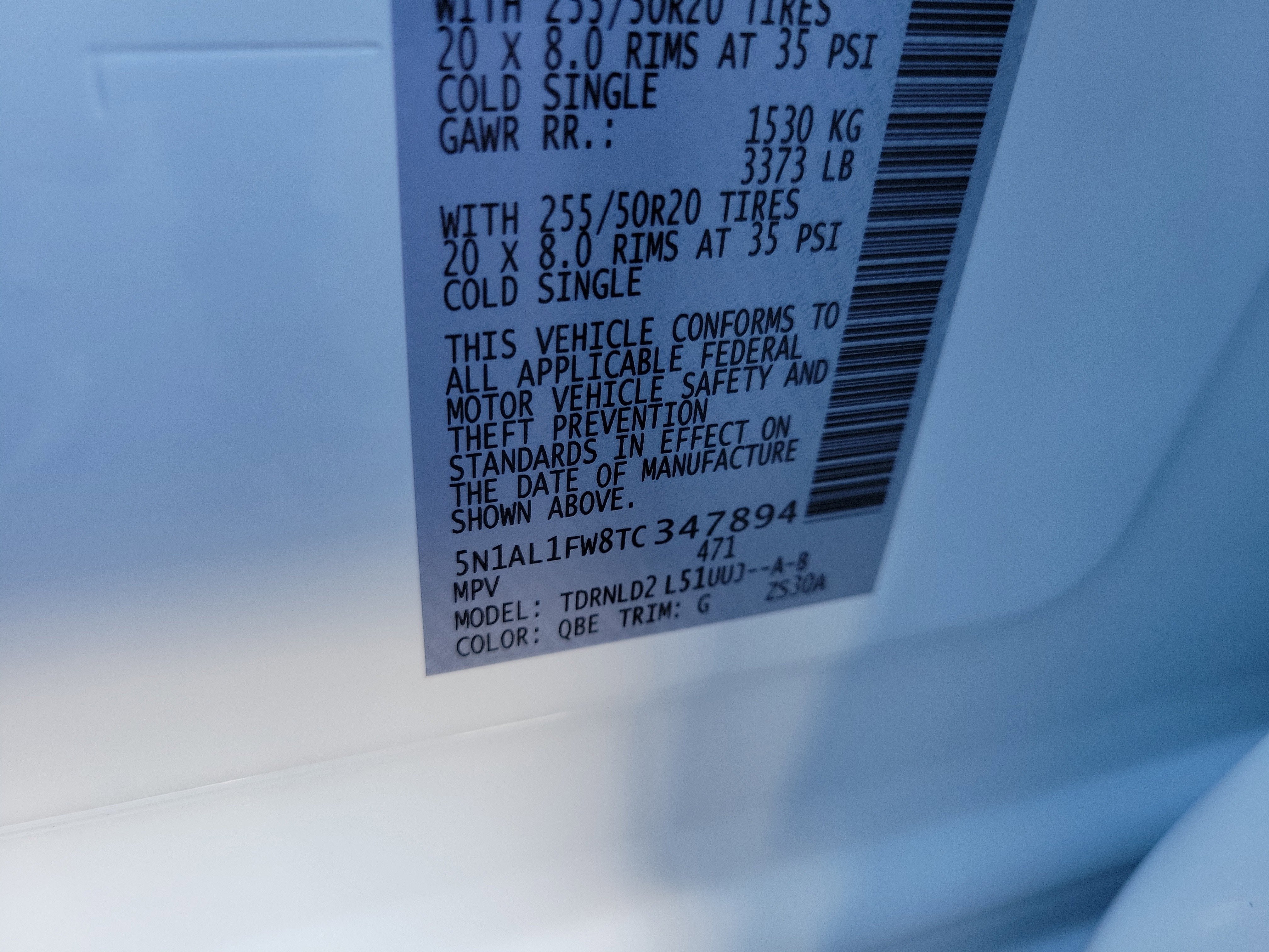 - Tires: P255/50R20 All-Season