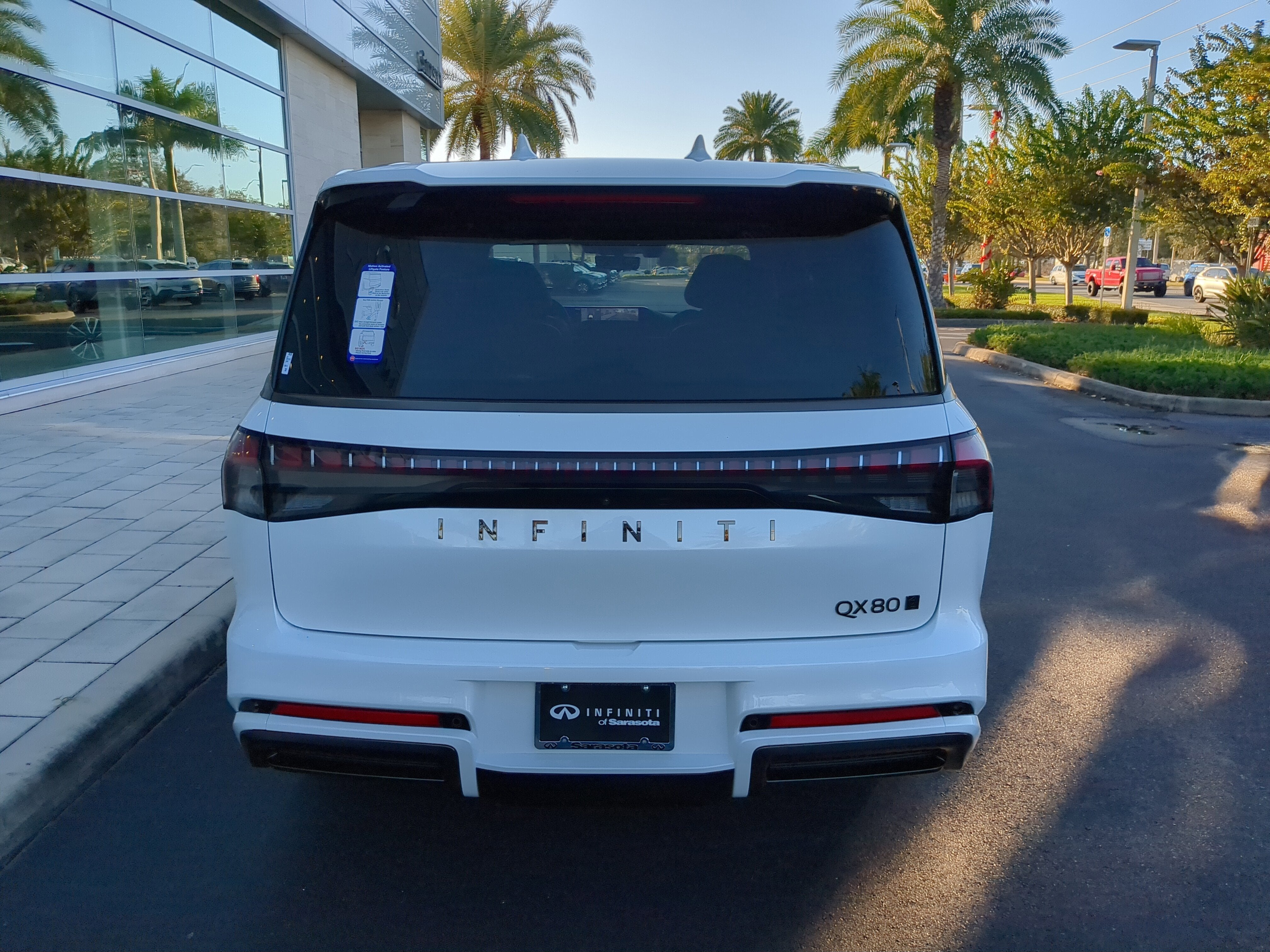 Pricing excludes tax, tag, title and pre-delivery service fee of $999 and private tag agency fee of $24.40. *See below for details.Boasts 19 Highway MPG and 16 City MPG! This INFINITI QX80 boasts a Twin Turbo Premium Unleaded V-6 3.5 L/213 engine powering this Automatic transmission. RADIANT WHITE, GRAPHITE, SEMI-ANILINE PREMIUM LEATHER SEATING SURFACES -inc: unique quilting pattern, [M93] PREMIUM CARGO PACKAGE -inc: Carpeted Cargo Area Protector, Console Net, Cargo Shelf/Barrier, Cargo Blocks/Stabilizers, Soft-Sided Cargo Cooler.* This INFINITI QX80 Features the Following Options *[B92] SPLASH GUARDS, Wireless Phone Connectivity, Window Grid And Roof Mount Diversity Antenna, Wheels: 22 x 8.5J Cast Aluminum-Alloy -inc: unique styling and finish, Wheels w/Machined w/Painted Accents Accents, Voice Activated Dual Zone Front Automatic Air Conditioning w/Front And Rear Infrared, Valet Function, Trunk/Hatch Auto-Latch, Trip Computer, Transmission: 9-Speed Automatic w/Paddle Shifters -inc: drive mode selector (standard, eco, sport, snow, tow and personal).* Visit Us Today *Test drive this must-see, must-drive, must-own beauty today at INFINITI of Sarasota, 4950 Clark Rd, Sarasota, FL 34233.