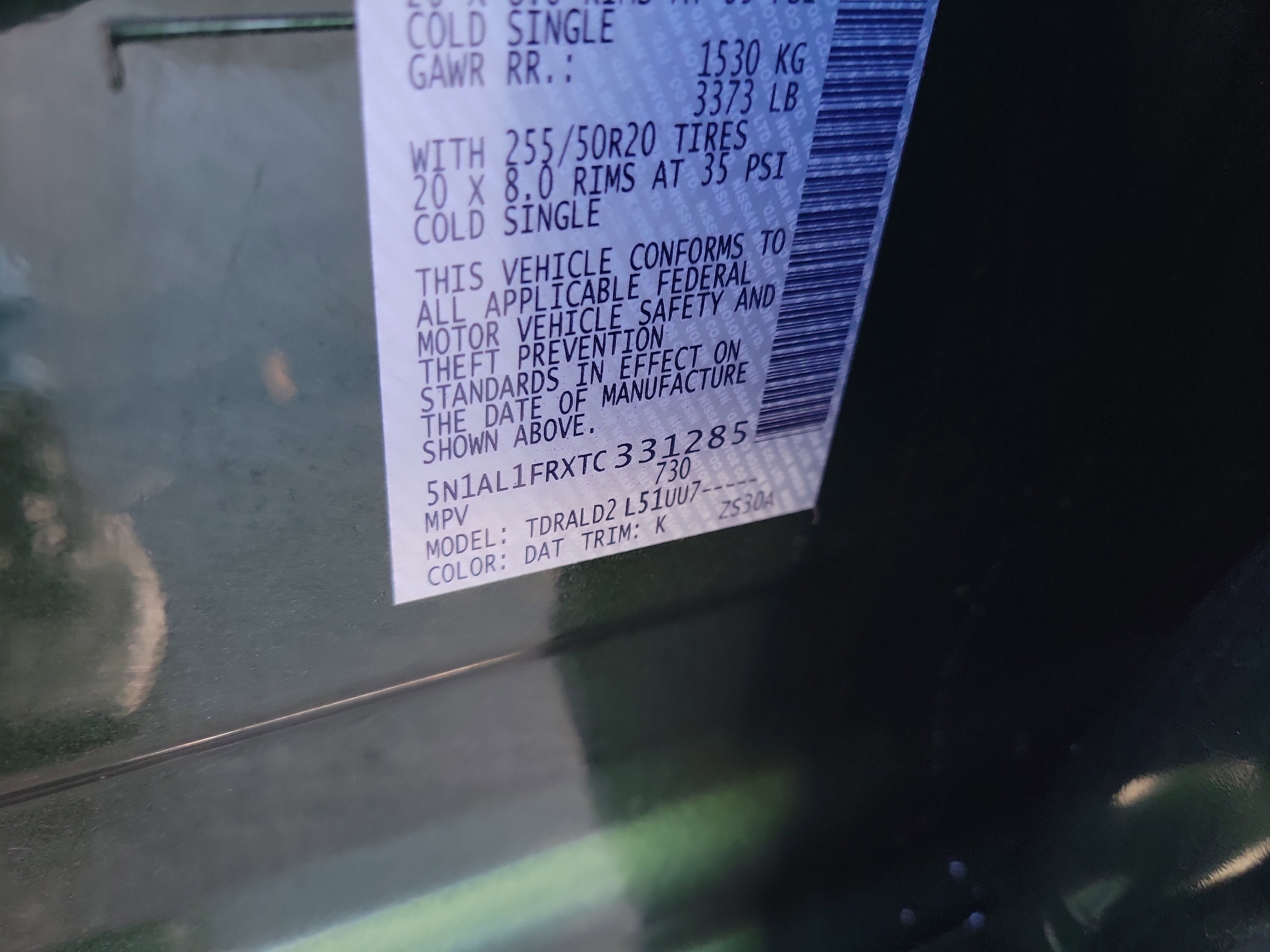 - Tires: P255/50R20 All-Season